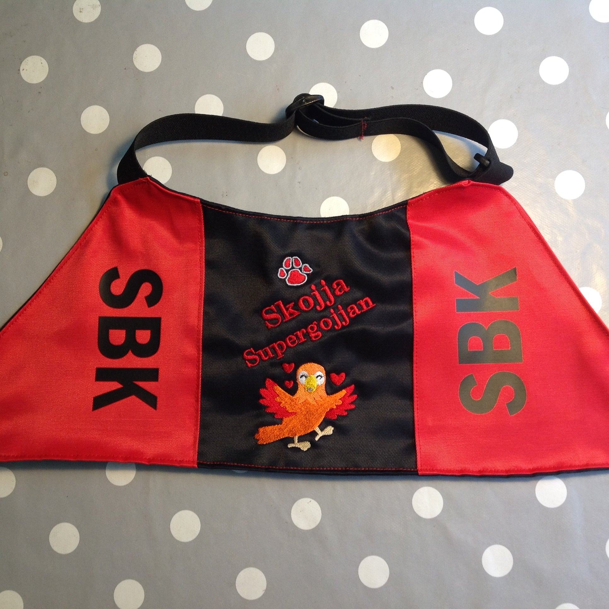 Elastiska reglerbara band framtill.