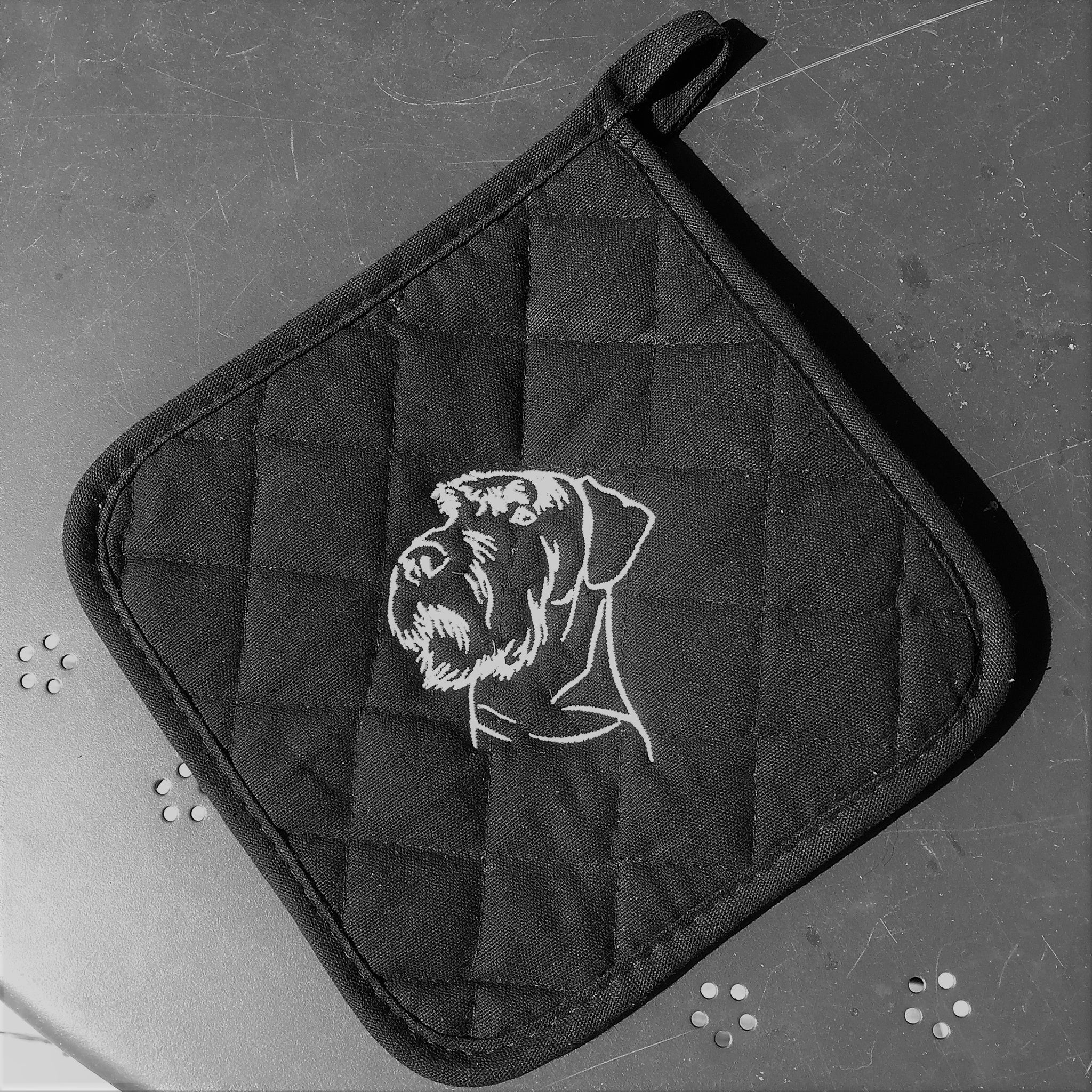 Grytlapp med broderad "Riesensilhuett"