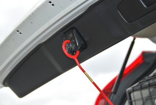 Vädringskroken fäster du i låsanordningen på bilens bagagelucka och på så sätt kan du låsa bilen och samtidigt släppa in luft till hunden.